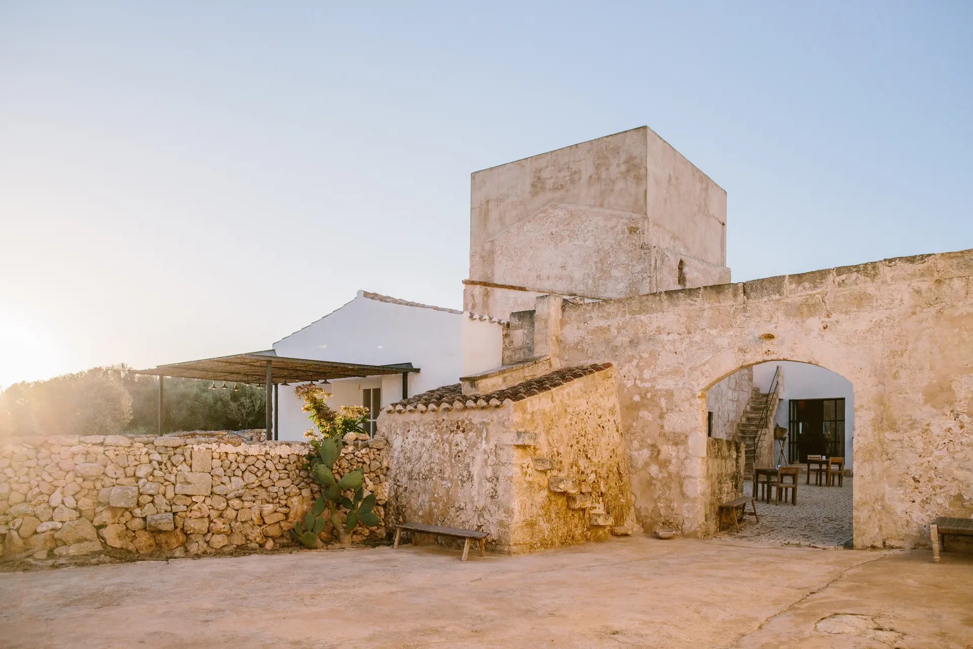 Entre viñedos plantas aromáticas, olivos, cítricos y un huerto ecológico en permacultura, dos típicas granjas menorquinas recuperadas componen Torre Vella.