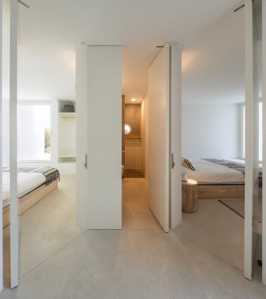 Las cuatro habitaciones son simples pero refinadas en diseño y decoración con grandes puertas-péndulo que también actúan como ventanas.