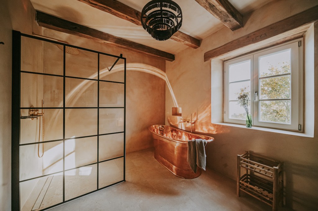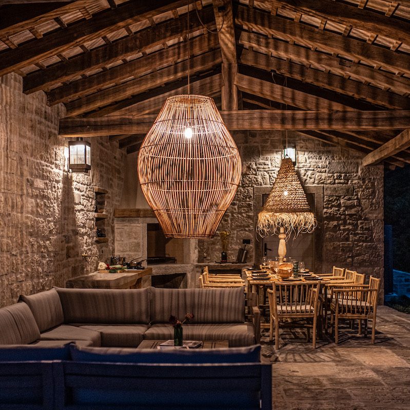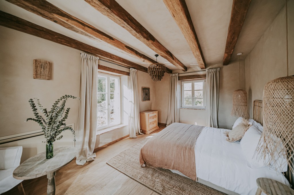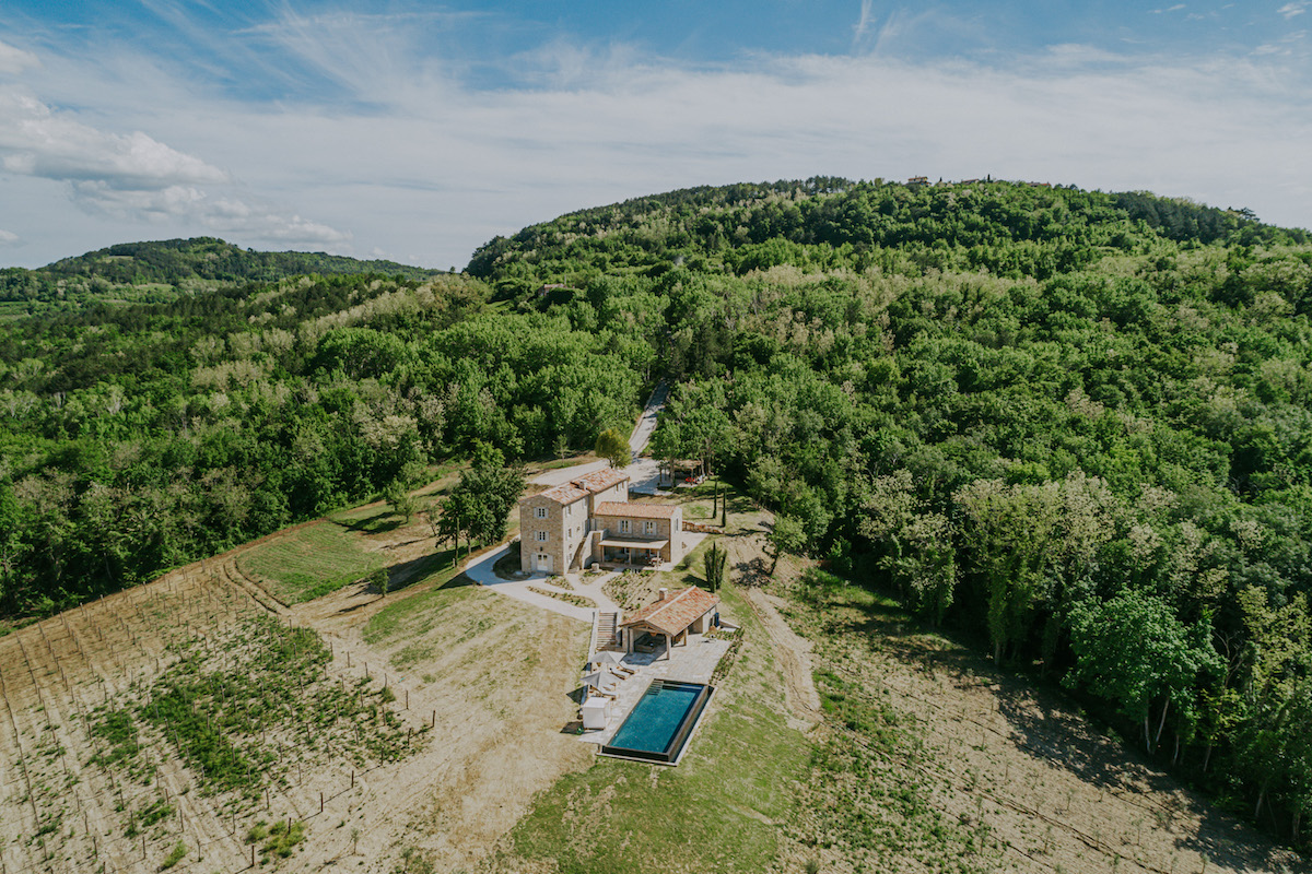 La casa es una amplia construcción de piedra con cuatrocientos años de historia restaurada, en 2019, de manera inmaculada con piedra de color miel, vigas antiguas de roble, azulejos de cotto y pinturas ecológicas a base de cal.