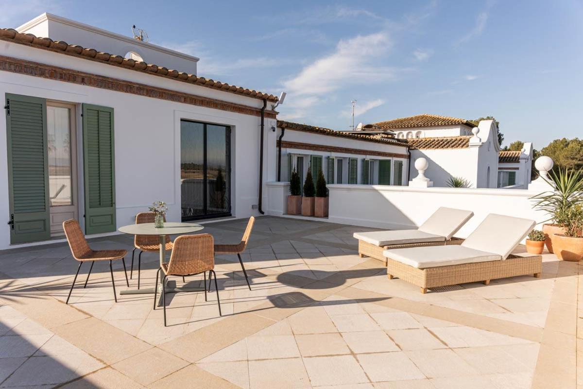 A Font de la Canya kültéri tereinek kialakítása a mediterrán életérzésre összpontosít. A teraszokon filigrán kovácsoltvas lábú asztalok és könnyed rattan bútorok teremtik meg a szellős, légies atmoszférát. A természetes anyagok, a lágy textíliák és a zöld növényzet harmonikusan illeszkednek egymáshoz, tökéletes helyszínt biztosítva a kikapcsolódáshoz és a társasági élethez.