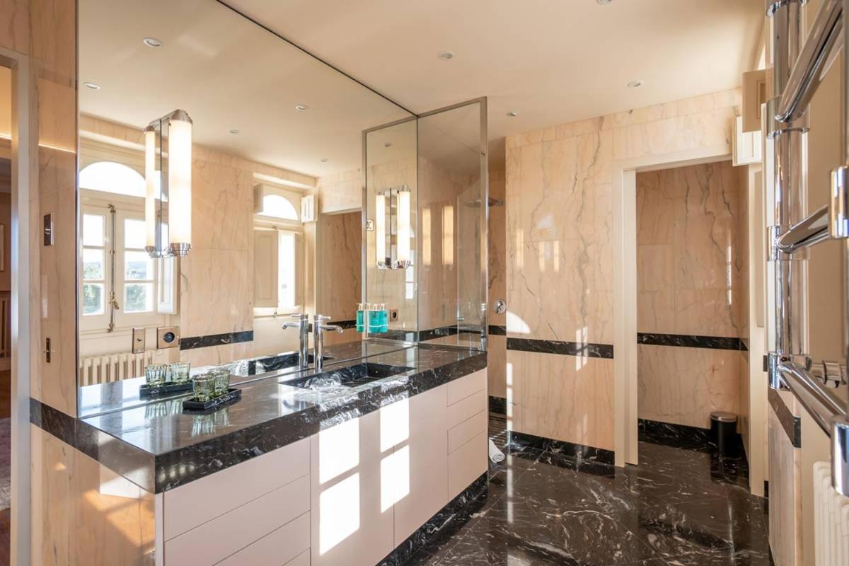 A fürdőszobákban a klasszikus elegancia uralkodik: a márvány burkolatok és munkalapok luxust sugároznak, miközben az egyszerű, modern szerelvények frissességet hoznak a térbe. A fényes felületek és a természetes anyagok kombinációja egyensúlyt teremt a hagyományos és a kortárs elemek között.