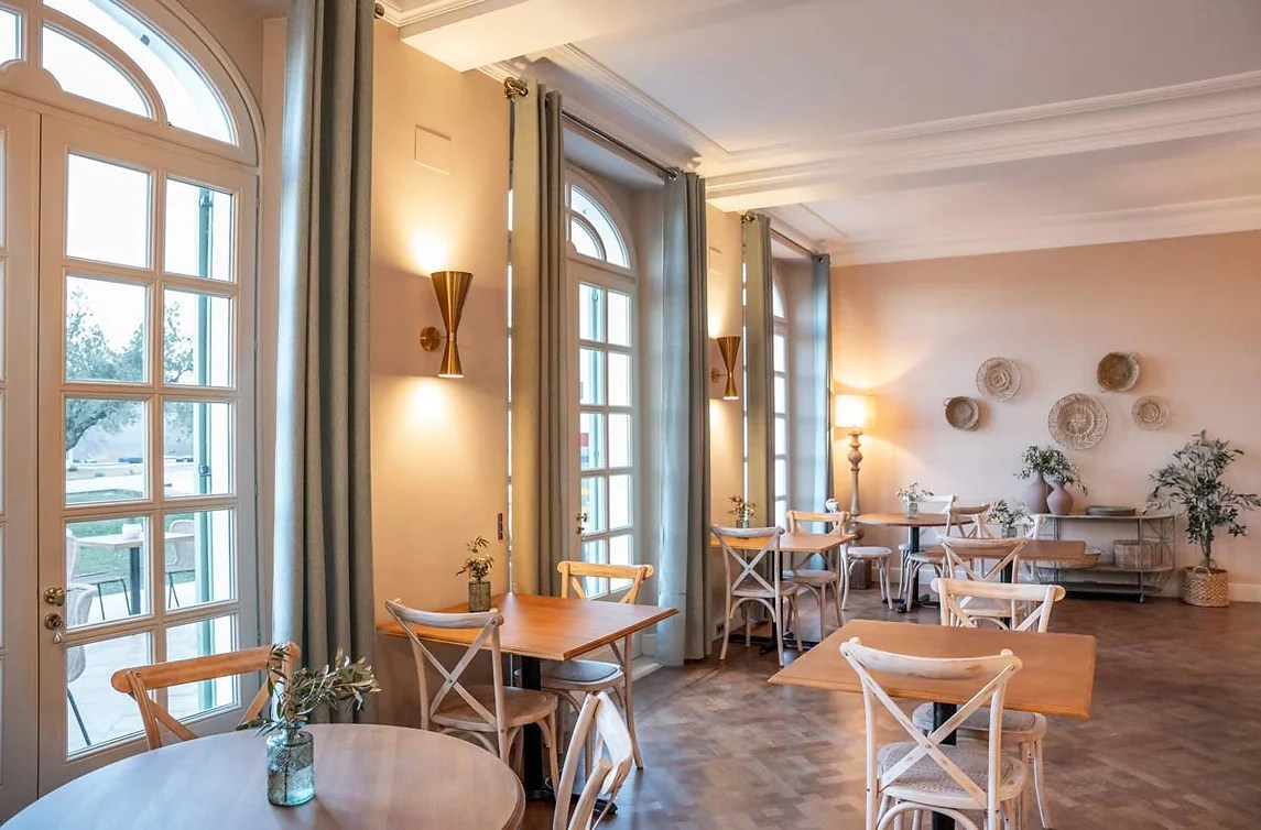 A provence-i stílus meghatározó jellemzői, például az antik bútorok, a világos, természetes színpaletta és a textúrák gazdagsága, finoman keverednek a katalán építészet tradicionális elemeivel. Az ornamentális mintájú cementlap burkolat, a helyi hagyományok előtt tiszteleg, miközben egyedi karaktert kölcsönöz a boutique hotel éttermének.